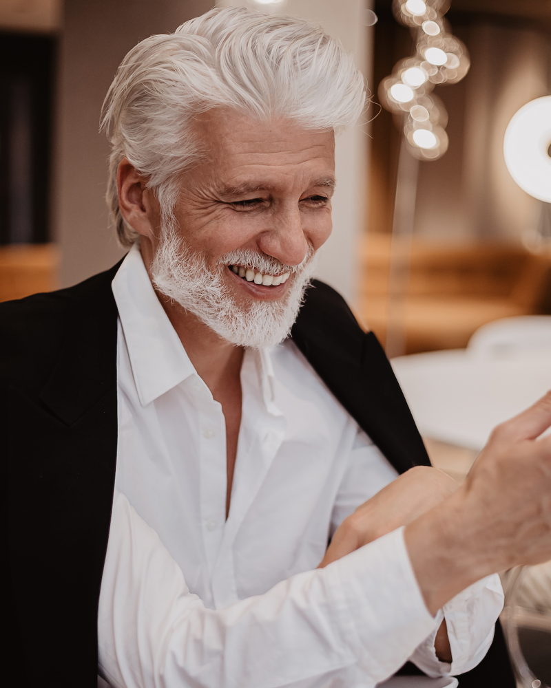 | Height | 1,86 | Size | 50 | Chest | 102 | Waist | 85 | Hips | 94 | Shoes | 44 | Hair | white-grey | Eyes | green-brown |